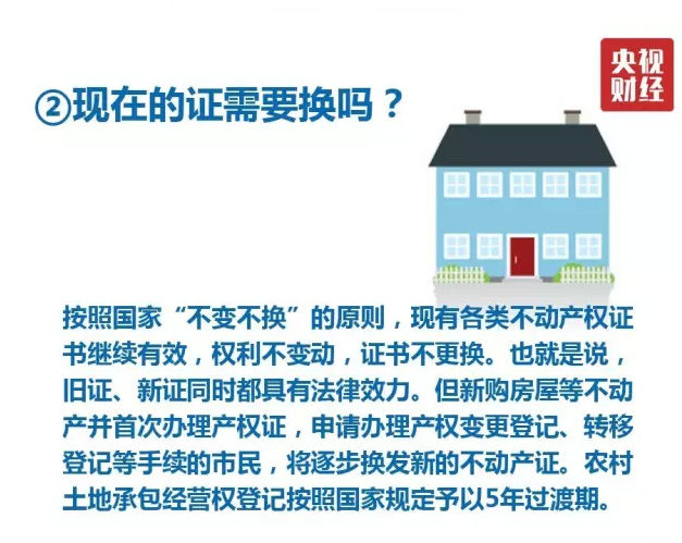 但就權(quán)利人的實質(zhì)影響而言,不動產(chǎn)登記證明只是房產(chǎn)證、國土證等不動產(chǎn)統(tǒng)一后的新證明,可以為入學(xué)、就醫(yī)、出國等作為證明和擔(dān)保。舊的房產(chǎn)證并非一定要換“新證”。不動產(chǎn)登記機(jī)構(gòu)堅持“不變不換”原則,權(quán)利不變動,簿證不更換,依法辦理變更、轉(zhuǎn)移等登記工作時,逐步更換為新的不動產(chǎn)登記簿證。